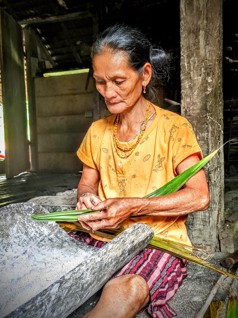 Before fishing, the women dressed me up – a banana leaf skirt that we made in the morning, a headband, colourful handmade jewelry, and a bamboo tube slung across my back (which I later learned was the fish container, not decoration!).